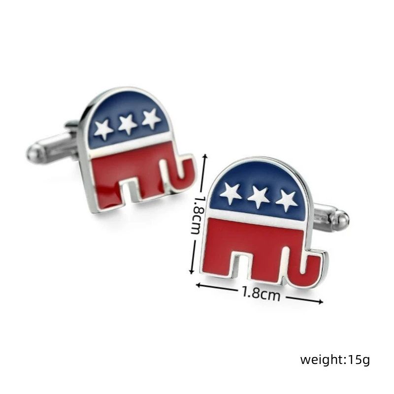 De manchetknopen zijn zorgvuldig ontworpen met een glanzende afwerking en een subtiel reliëf, zodat het symbool van de Republikeinse partij goed tot zijn recht komt. De zilveren kleur zorgt ervoor dat ze zowel formeel als casual gedragen kunnen worden. Deze manchetknopen zijn vervaardigd van duurzame materialen die lang meegaan, waardoor ze niet alleen een waardevolle toevoeging zijn aan elke garderobe, maar ook een tijdloos sieraad dat politiek engagement subtiel vertegenwoordigt.