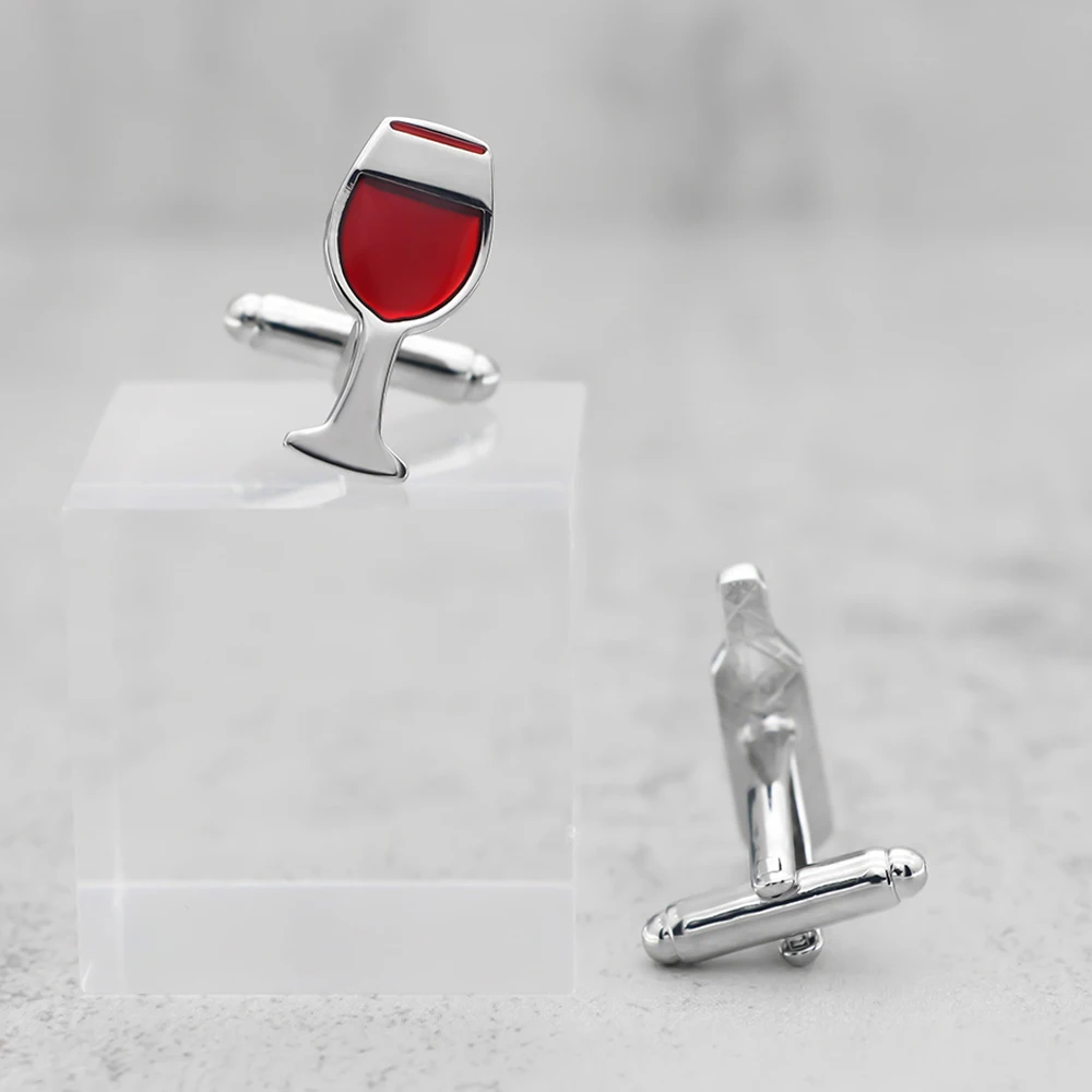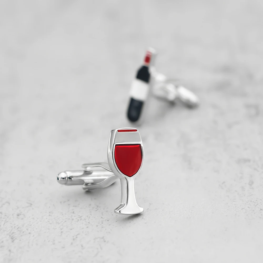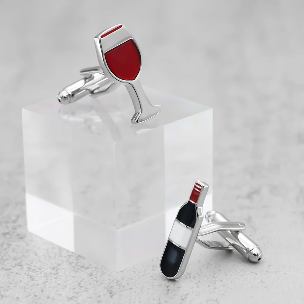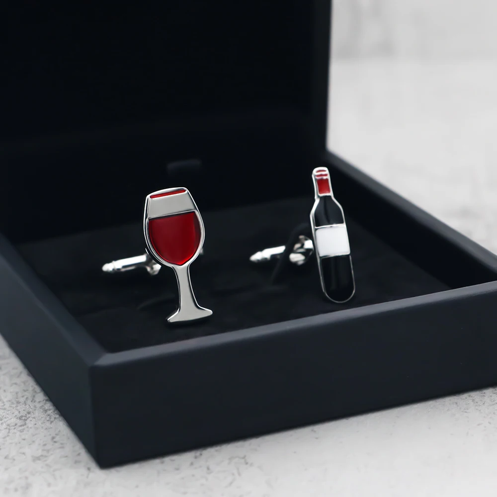 Voeg een Vleugje Luxe Toe aan Je Outfit met Onze Manchetknopen Rode Wijn Fles en Glas