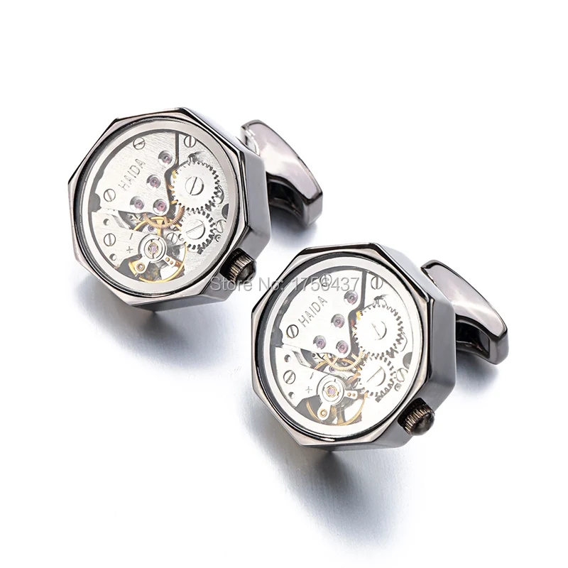 De uurwerk manchetknopen zijn prachtig gedetailleerd, met zichtbare tandwielen en mechanische onderdelen die doen denken aan het binnenwerk van een traditioneel horloge. Dit intrigerende ontwerp geeft je outfit een verfijnde, vintage uitstraling en voegt tegelijkertijd een vleugje mystiek toe. De precisie en de ingewikkelde details in het uurwerkontwerp maken deze manchetknopen tot een echt kunstwerkje dat tijdloze elegantie uitstraalt.