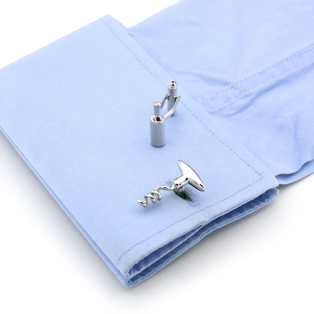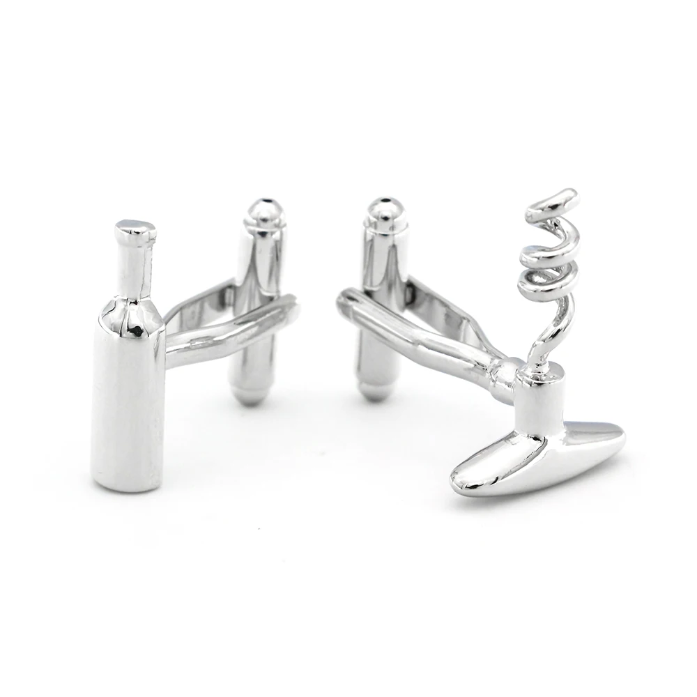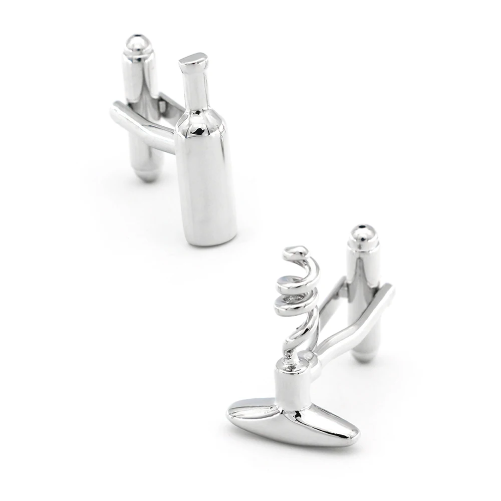 Deze zilveren manchetknopen zijn prachtig ontworpen en gemaakt van hoogwaardig materiaal dat een luxe uitstraling heeft. De subtiele, zilverkleurige afwerking geeft een tijdloze charme die zowel formele als casual outfits compleet maakt. De manchetknopen vormen samen een set: één manchetknop heeft de vorm van een verfijnde wijnfles en de andere van een klassieke kurkentrekker. Dit contrast maakt het ontwerp niet alleen uniek maar ook bijzonder herkenbaar, en het geeft een speels tintje aan een elegante outfit.